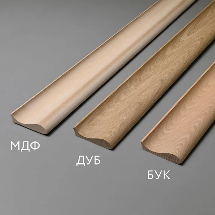 Карниз из бука отличается исключительно плотной структурой (700-790 кг/м³) и безупречными технологическими характеристиками. Мелкопористая текстура идеально воспринимает весь спектр современных отделочных систем от инновационных лаков до дизайнерских эмалей. Равномерная структура волокон обеспечивает однородность окрашивания по всей протяженности широкого профиля, что критично для создания цельных авангардных архитектурных линий.