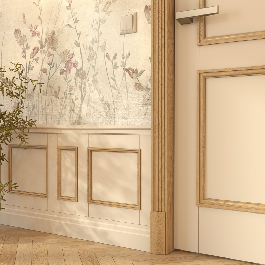 Молдинг из бука практичных тонов поддерживает атмосферу скандинавской функциональности и минималистской универсальности в компактных мебельных конструкциях и гармоничной интерьерной отделке. Идеально сочетается с плинтусами из массива практичных размеров для создания функциональной композиции.