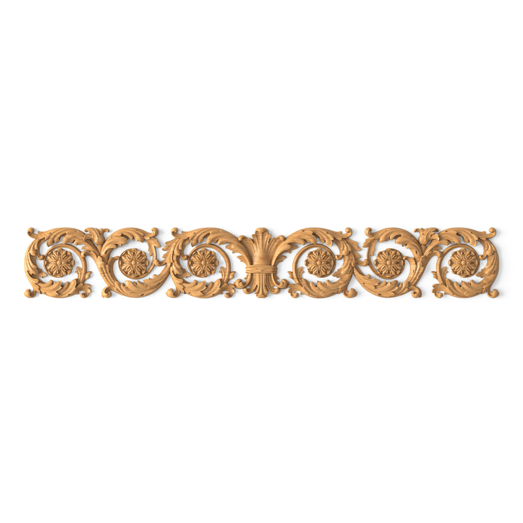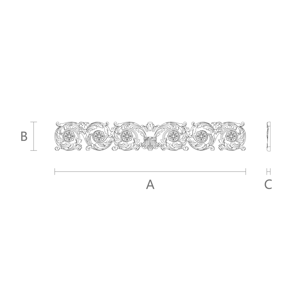 Деревянный декор N-076.1 — горизонтальная декоративная накладка с изысканным растительным орнаментом в классическом стиле, представляющая собой образец высокого столярного мастерства и художественной резьбы по дереву. Элегантный симметричный узор, выполненный в технике рельефной резьбы, сочетает античные мотивы акантовых листьев с барочными завитками и центральным декоративным элементом в виде стилизованной пальметты. Изделие изготавливается из натурального массива бука или дуба, что обеспечивает безупречное качество, долговечность и экологичность декоративного элемента. Универсальная горизонтальная ориентация орнамента позволяет использовать накладку для декорирования мебельных фасадов, межкомнатных дверей, каминных порталов, стеновых панелей и архитектурных элементов интерьера.