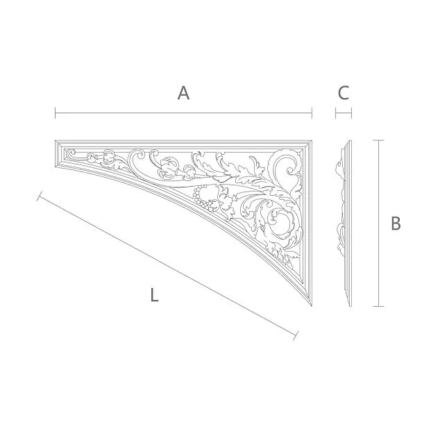 Резная накладка N-177R - это декор из дерева высокого качества. Она изготавливается из дуба или бука, которые отличаются прочностью, долговечностью и красотой. Дерево - это экологичный и натуральный материал, который не выделяет вредных веществ и не вызывает аллергии. Дерево также имеет теплую и приятную на ощупь текстуру, которая создает комфорт и гармонию в интерьере.