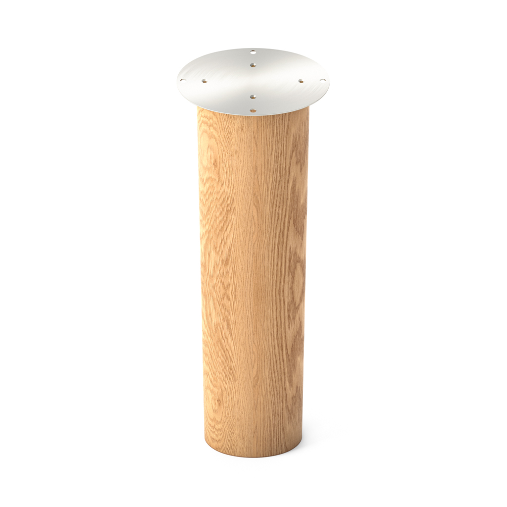 Дизайн современной мебельной ножки MN-241 выполнен в лаконичном современном стиле с элементами минимализма и скандинавской эстетики. Форма опоры характеризуется четкими геометрическими линиями, сбалансированными пропорциями и отсутствием излишней декоративности. Основное тело ножки представляет собой цилиндр с выразительной текстурой натурального дерева, дополненный функциональными элементами в верхней и нижней частях, что делает эту мебельную ножку из массива универсальным решением для различных интерьерных стилей.