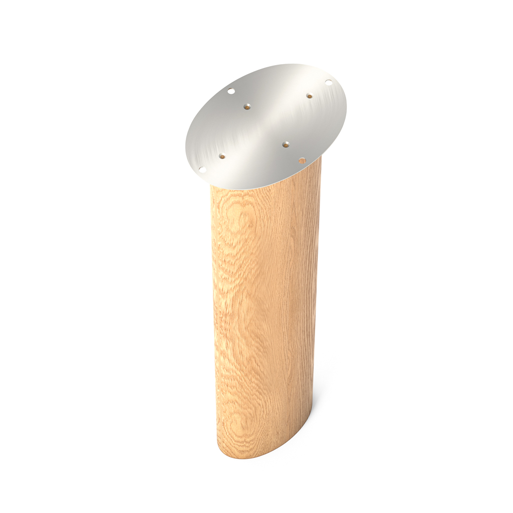 • Выразительная деревянная вертикальная опора обтекаемой формы с овальным поперечным сечением. Поставляется с установленной металлической монтажной пластиной (толщина 2 мм.)