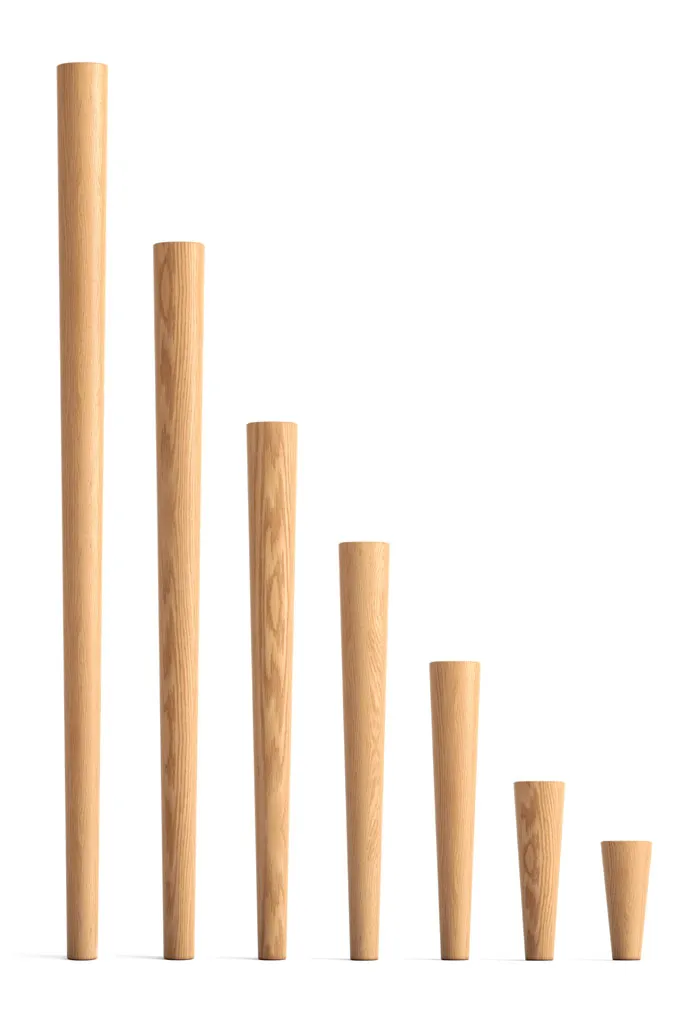 Точеная мебельная ножка MN-145 из массива дуба или бука имеет круглую, конусообразную форму, которая гармонично сочетается с любым столешницей. Высота ножки может варьироваться от 100 до 750 мм, в зависимости от ваших предпочтений и размеров вашего стола. Ножки поставляются без окраски, что дает вам возможность окрасить или тонировать их по своему вкусу. Вы можете выбрать цвет, который будет гармонировать с вашим интерьером, или создать контрастный акцент, который привлечет внимание.