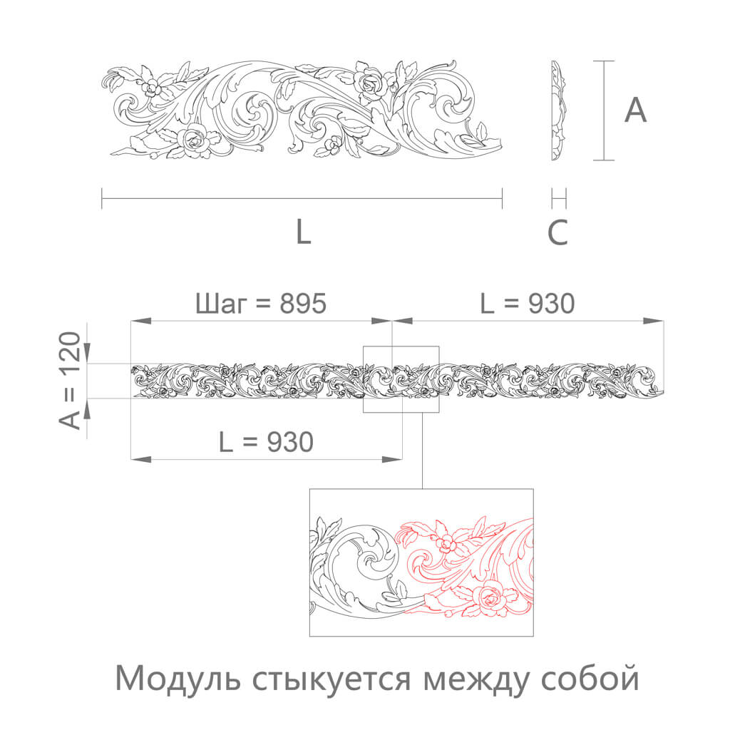 Да — именно для длинных стеновых декоративных поясов K-130 создан. Длина модуля 930 мм удобна для монтажа, орнамент рассчитан на стыковку без видимых разрывов рисунка. Для стены 3–4 метра потребуется 4–5 модулей.