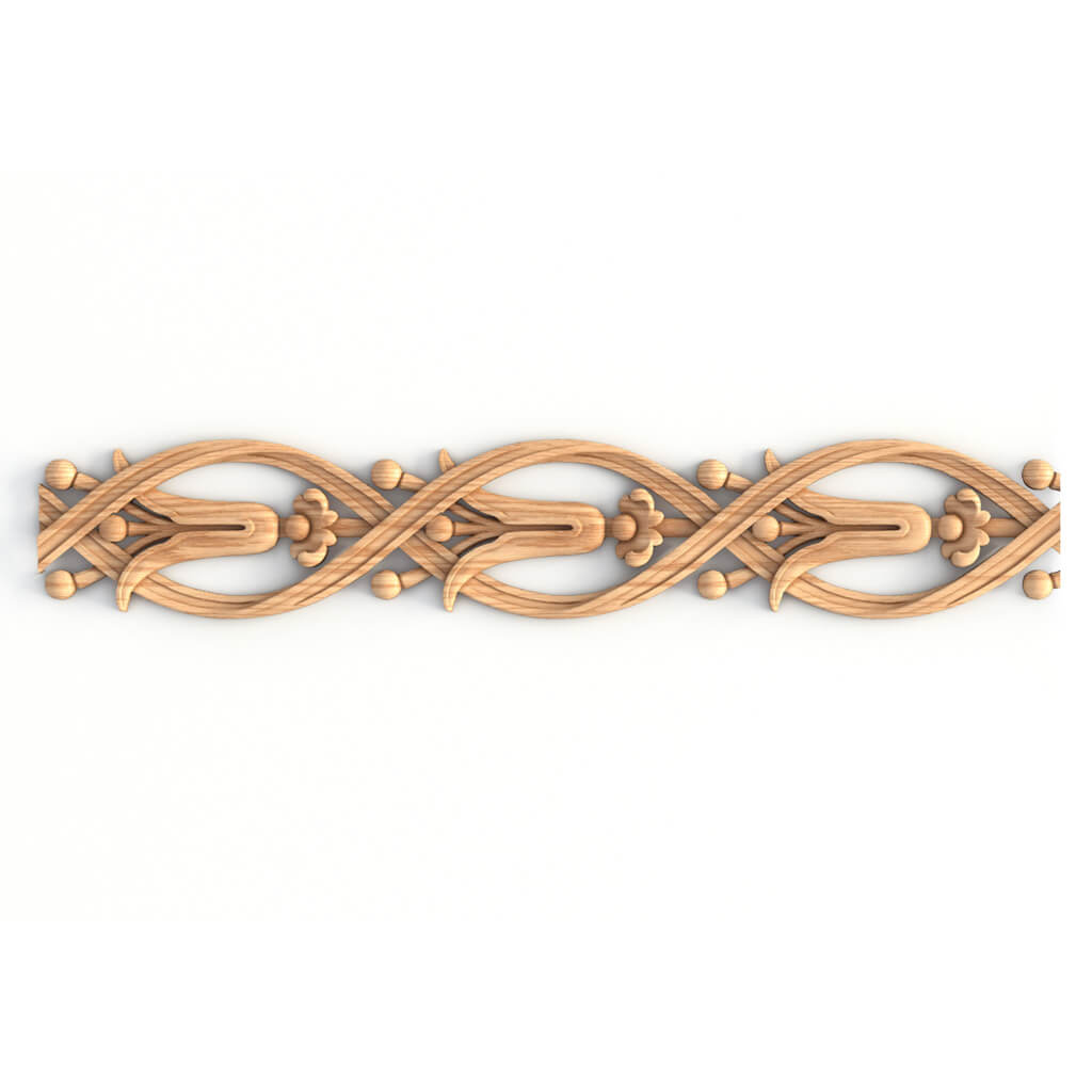 Декоративный погонаж из дерева K-041 «лилии в лентах» — нежный и изящный акцент для проектов в классических стилях. Применяется для украшения фасадов, дверей, шкафов, тумб, столов, лестниц, потолков, фризов. Его воздушный орнамент добавит в проект изящества и легкости, подчеркнет утонченность интерьера или мебели. Стандартная размерная сетка составлена исходя из самых востребованных запросов. При необходимости резной погонаж K-041 можно изготовить в нестандартных размерах.