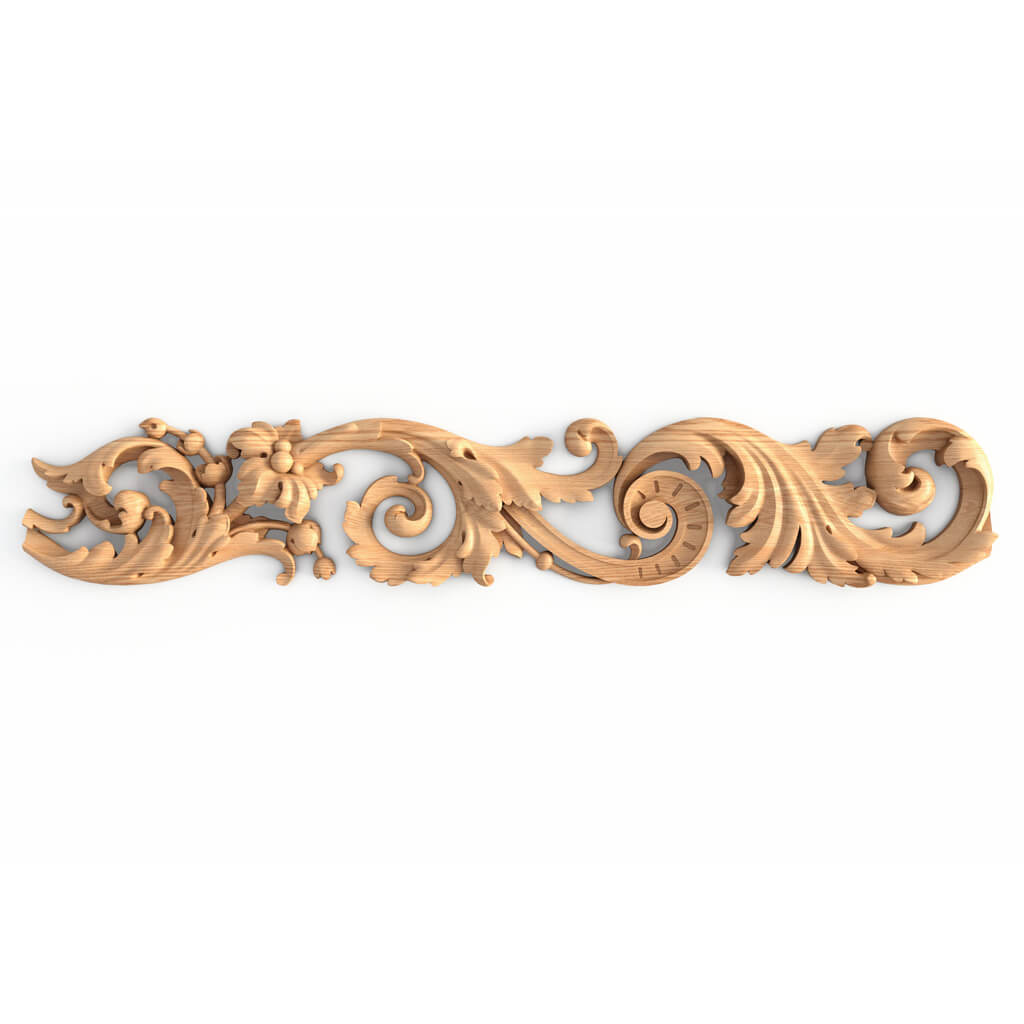Ажурный резной погонаж K-062 в стиле ренессанс с цветами и акантовыми листьями станет изысканным акцентом интерьера или мебели. Декоративный фриз подчеркивает великолепие стиля, добавляет роскоши, статусности в любой интерьер или мебель в классическом стиле. Погонаж из дерева K-062 применяют в проектах лестниц, стеновых панелей, в дизайне кроватей, шкафов, тумб и кухонь. В нестандартных решениях он часто становится украшением TV-зон и рам под зеркала. Насыщенный, сложный, но в то же время изящный узор позволяет создавать неограниченное количество эксклюзивных проектов.