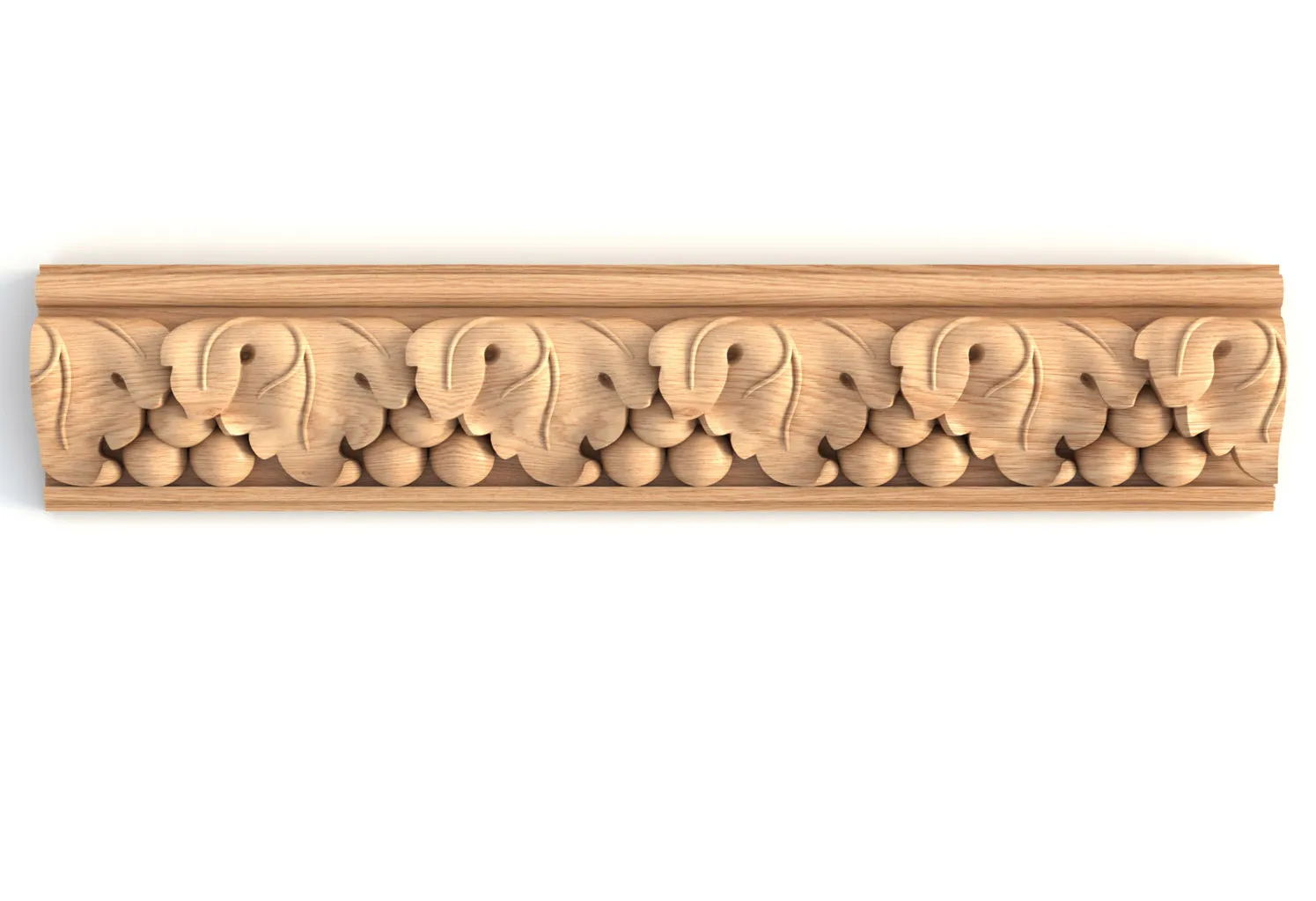 Резной погонаж из дерева K-063 – это не только элемент декора, но и отражение мастерства резчика, который воплощает в жизнь сложнейшие узоры природы. Каждый элемент этого погонажа, будь то лист или ягода, выполнен с безупречной точностью, передавая всю глубину и многообразие природных форм. Использование дерева дуба и бука придает изделию особую прочность и долговечность, позволяя сохранить красоту на долгие годы.