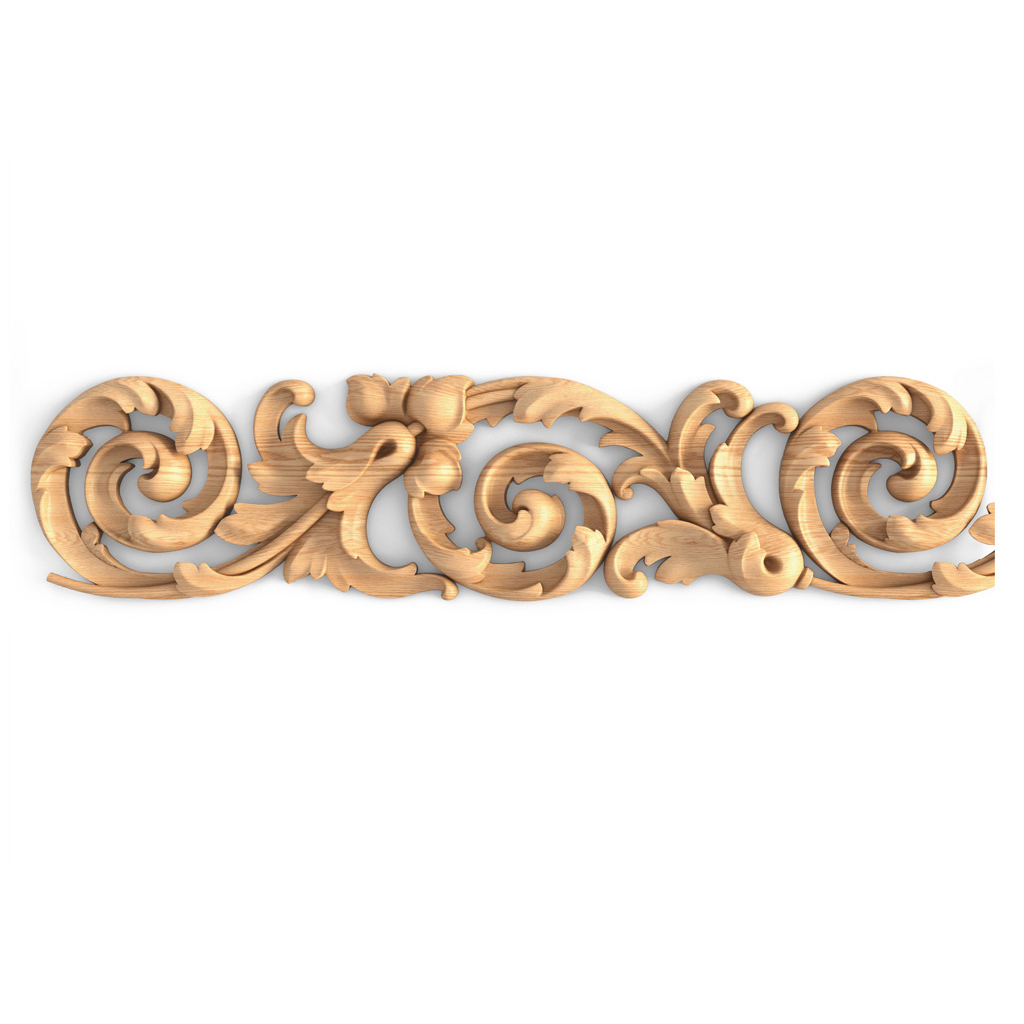 Резной фриз в K-081 выполнен в барочном стиле. Это классика и роскошь. Он и сочетается с любыми элементами с растительным узором. Органично вписывается в дизайны лестниц, кухонной и спальной мебели. Богатый, насыщенный орнамент украсит интерьер кабинета или гостиной. Часто применяется в проектах церковного направления. В нестандартных решениях деревянный фриз этой модели популярен при оформлении TV-зон и рам под зеркала.