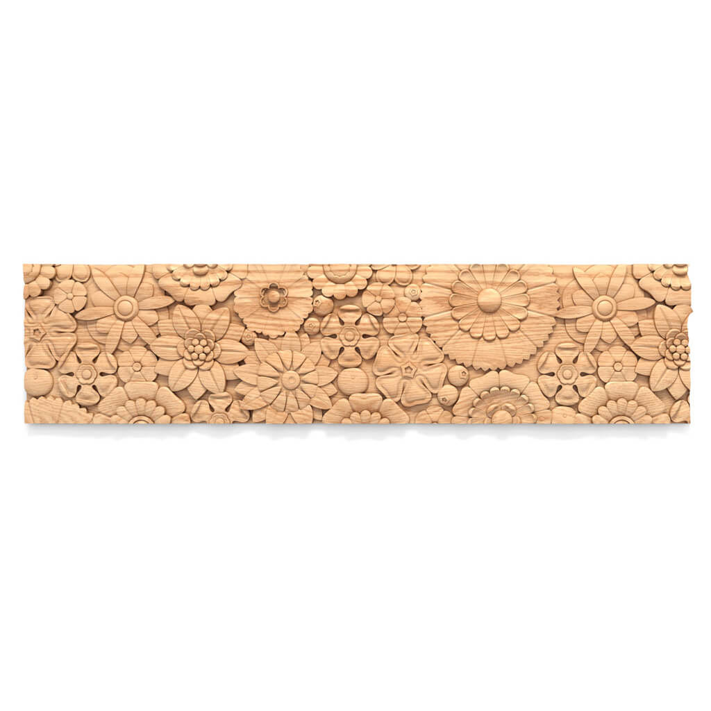 Резной погонаж K-102 несет в себе не только эстетическую ценность, но и практическую пользу. Изготовленный из дуба или бука, он обладает высокой прочностью и долговечностью, что делает его идеальным выбором для декоративных элементов, подверженных повседневному использованию. Его уникальный цветочный узор не только украшает, но и скрывает мелкие повреждения или износ, что особенно ценно в местах с высокой проходимостью.