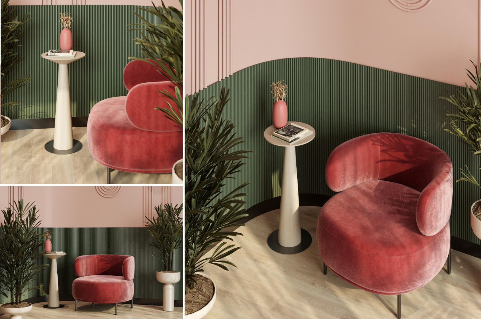 В интерьере огибает радиусные стены, колонны, ниши и арки. На акцентных стенах дает глубину светотени.