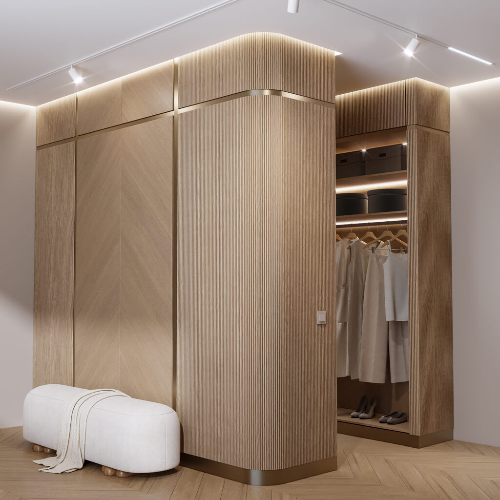 Мебельные фасады — фасады шкафов, тумб, комодов, гардеробных систем, где реечная текстура придаёт мебели архитектурный характер