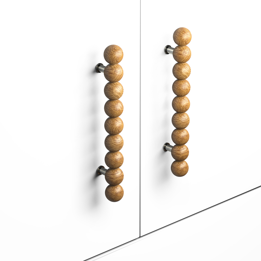 Мебельная ручка-скоба Atlas HL-071M изготавливается по специальной технологии, сочетающей традиционные методы деревообработки с современными инженерными решениями. Основу конструкции составляет металлический стержень из нержавеющей стали, на который нанизаны точеные сферические элементы из массива дуба. Каждая сфера диаметром 28 миллиметров проходит прецизионную обработку на токарных станках, обеспечивающую идеальную геометрию и гладкость поверхности. Такая конструкция создает уникальную тактильную текстуру и визуальную глубину.