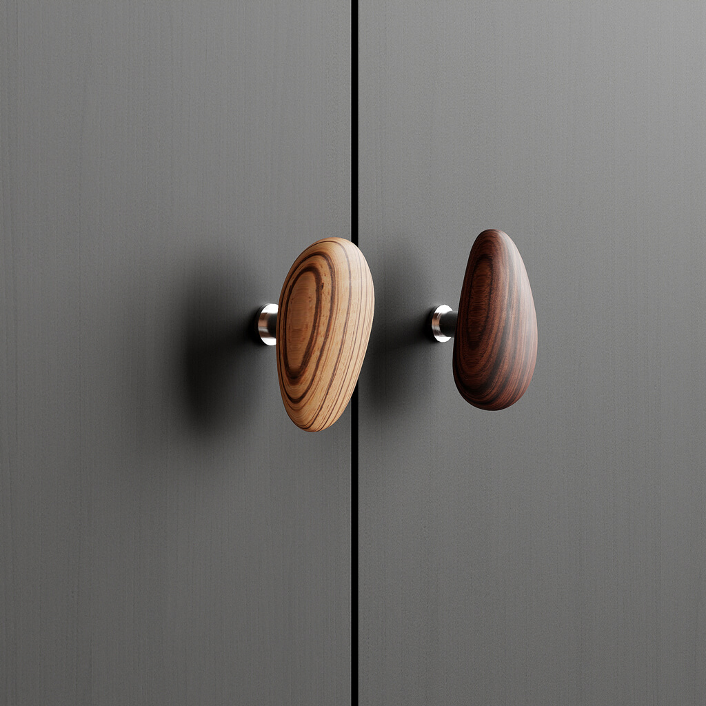 Каждая ручка Pebble HL-065-1M уникальна благодаря натуральной текстуре и рисунку древесины. Это делает каждое изделие особенным и добавляет интерьеру теплоту и натуральный шарм. Мебельная ручка привносит в пространство спокойствие и природное вдохновение, делая его уютным и стильным.