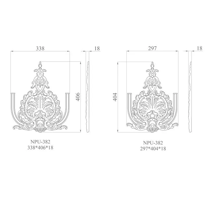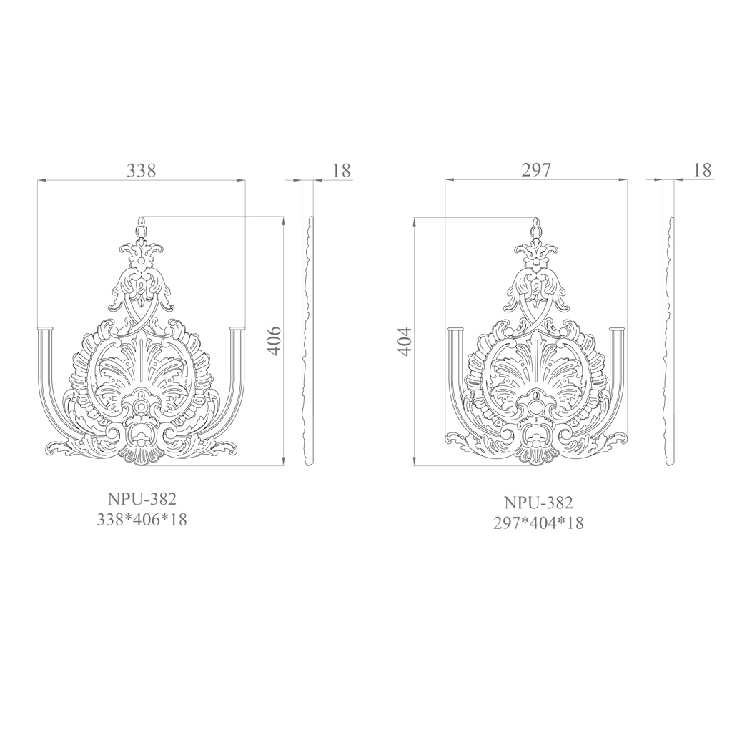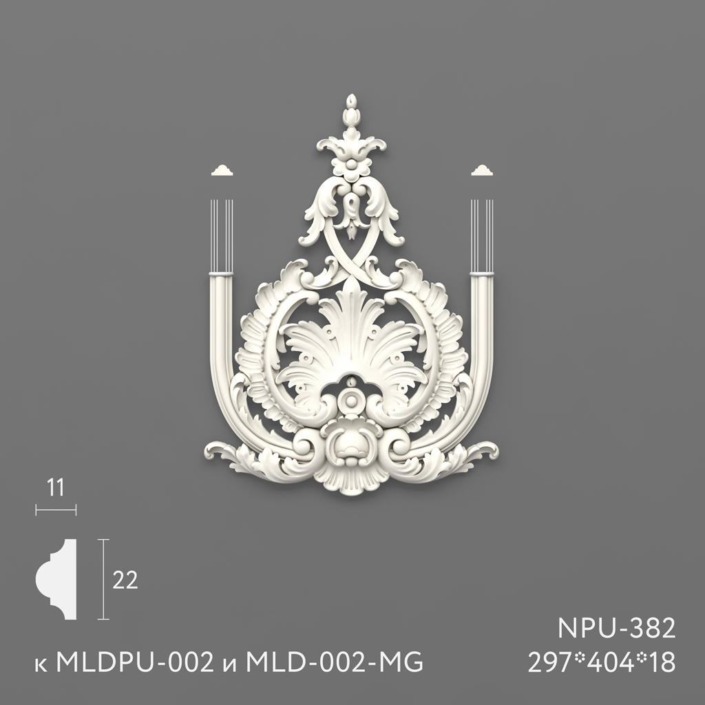 Накладка NPU-382 обладает утонченным дизайном, который воспроизводит классические мотивы и добавляет интерьеру нотку роскоши и утонченности. Она идеально подходит для создания акцентов на стенах, потолках и мебели, делая их более выразительными и привлекательными. Использование полиуретана позволяет добиваться высокой детализации и точности в исполнении узоров и орнаментов.