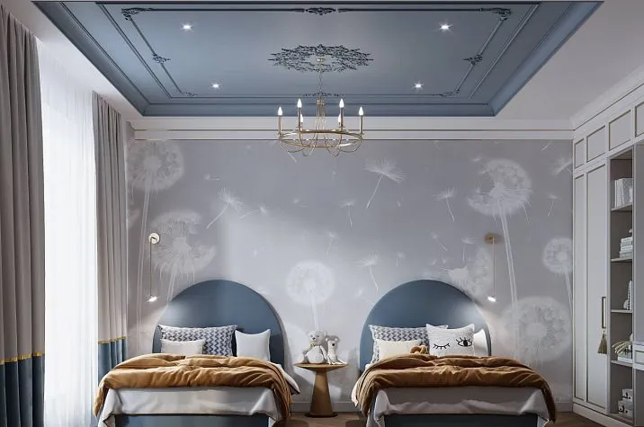 Лепной декор для потолка в детской комнате — нестандартный, но очень осознанный выбор. Ребёнок, растущий в пространстве с продуманным архитектурным оформлением, воспринимает красоту как норму. Потолочная система CPU-P1 или CPU-P5 в детской — деликатная, лаконичная, не перегружающая пространство, но создающая ощущение заботы и внимания к деталям.
