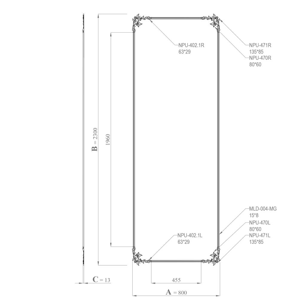 CPU-6-2 — это готовое декоративное решение для оформления вертикальной настенной рамки, в котором все детали уже подобраны, рассчитаны и согласованы между собой по стилю, пропорциям и материалу. Вы получаете законченную композицию размером 800 × 2300 мм, способную в одночасье преобразить любой участок стены — будь то гостиная с высокими потолками, просторная спальня, строгий кабинет, парадная прихожая или коммерческое пространство: салон, бутик, шоурум, ресторан.