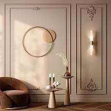 Профиль молдинга MLD-003-MG выполнен в лаконичном неоклассическом стиле с плавными линиями и сдержанным рельефом. Такая форма прекрасно сочетается с обеими полиуретановыми накладками комплекта, не конкурируя с ними за внимание, а деликатно обрамляя и подчеркивая их красоту. Декор для стен из полиуретана в сочетании с МДФ-молдингами создает оптимальный баланс цены и качества.
