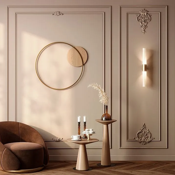 Возможность использования накладок как вместе, так и по отдельности позволяет адаптировать комплект к помещениям разного размера и конфигурации. В просторной гостиной можно создать масштабное панно с использованием всех элементов, а в компактной спальне – более сдержанную композицию с одной-двумя накладками.