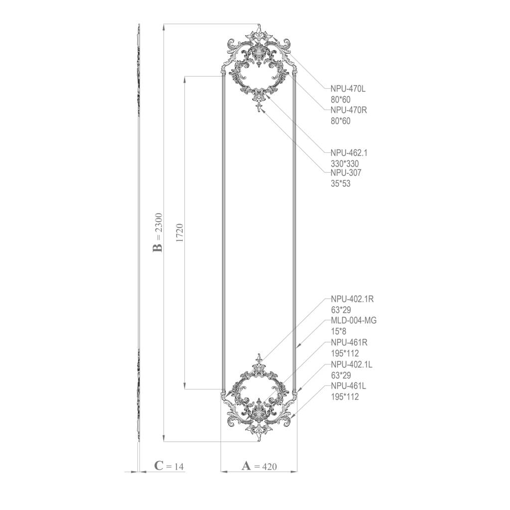 | NPU-461R | Лепной декор (правосторонний) | A=195 мм, B=112 мм, C=13 мм | 2 шт. |