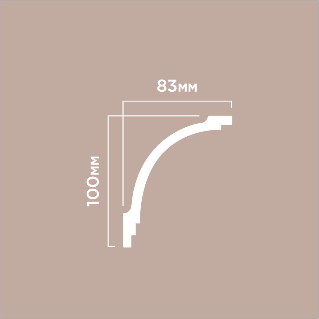 Увеличенная высота профиля 100 миллиметров делает карниз заметным архитектурным элементом, формирующим выразительную горизонтальную линию по периметру помещения. Ширина проекции на потолок 83 миллиметра обеспечивает массивный визуальный эффект и создает глубокую теневую зону, подчеркивающую рельефность декора. Белоснежная поверхность с гладкой фактурой идеально подходит для окрашивания в любой цвет или использования без дополнительной отделки в монохромных интерьерах.