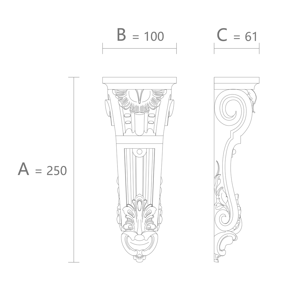 - Эстетическая привлекательность: Резной кронштейн KRPU.VRS-013 отличается изысканным дизайном, который прекрасно вписывается в различные стили интерьера, от классического до современного. Этот кронштейн добавляет изысканности и роскоши любому помещению.