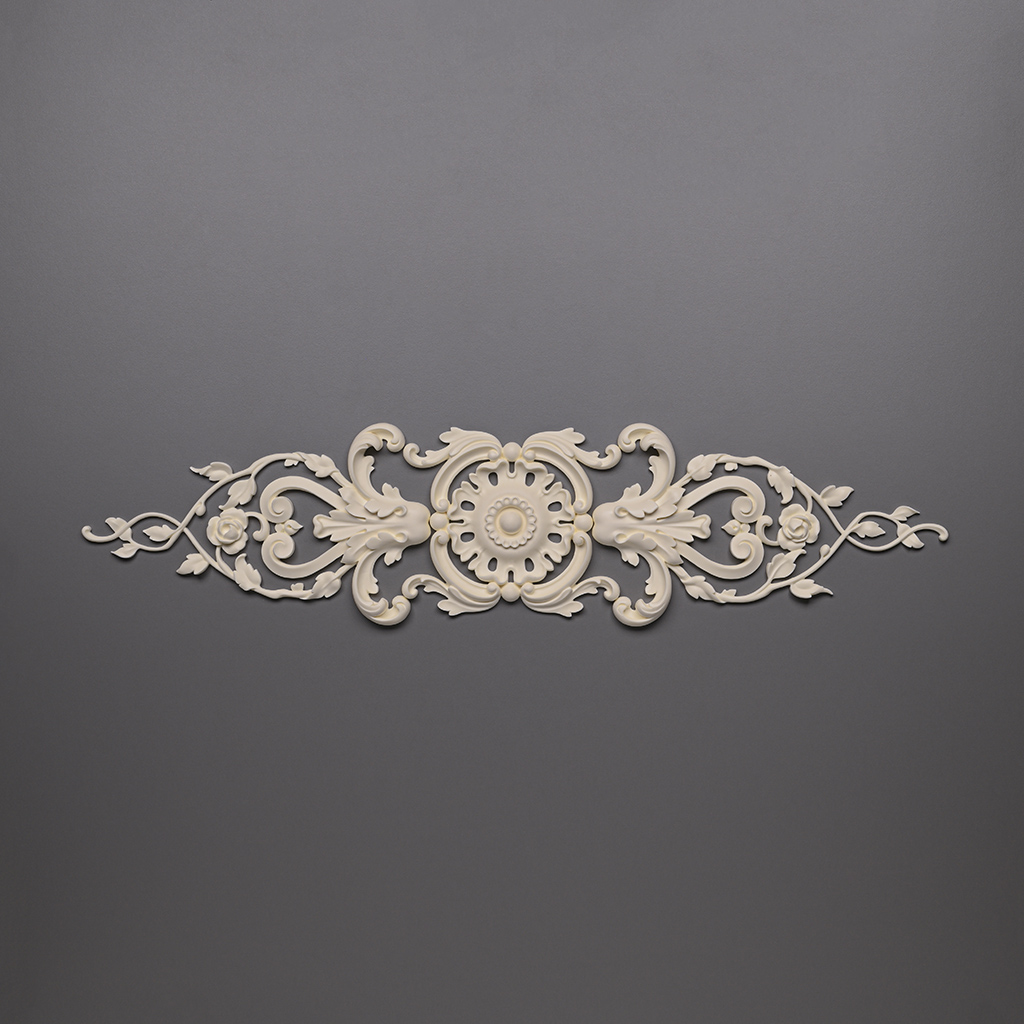 Данный декоративный элемент сочетает в себе плавные завитки, цветочные мотивы и симметричные линии, что придаёт ему особую выразительность. Создатели NPU.VRS-004 черпали вдохновение в классических стилях: барокко, рококо и ампир. Однако этот лепной декор не застрял в прошлом — он воплощён в современном материале, что делает его практичным, прочным и удобным в монтаже.