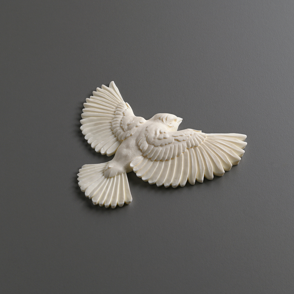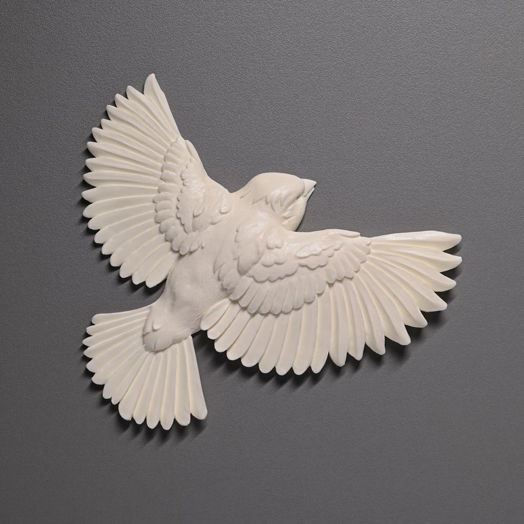 Декор отличается изысканной детализацией: чётко проработанные перья, мягкие изгибы тела и динамичная форма создают ощущение движения и лёгкости.