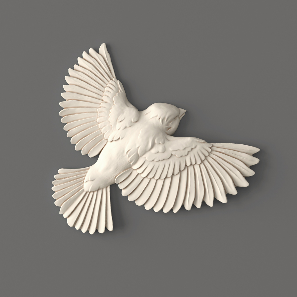Лепной декор "Летящая птица" NPU-492L - это воплощение изящества и символ свободы. Белоснежная скульптура птицы с распростертыми крыльями создает ощущение легкости и воздушности. Детально проработанное оперение демонстрирует высочайшее мастерство исполнения и внимание к мельчайшим деталям.