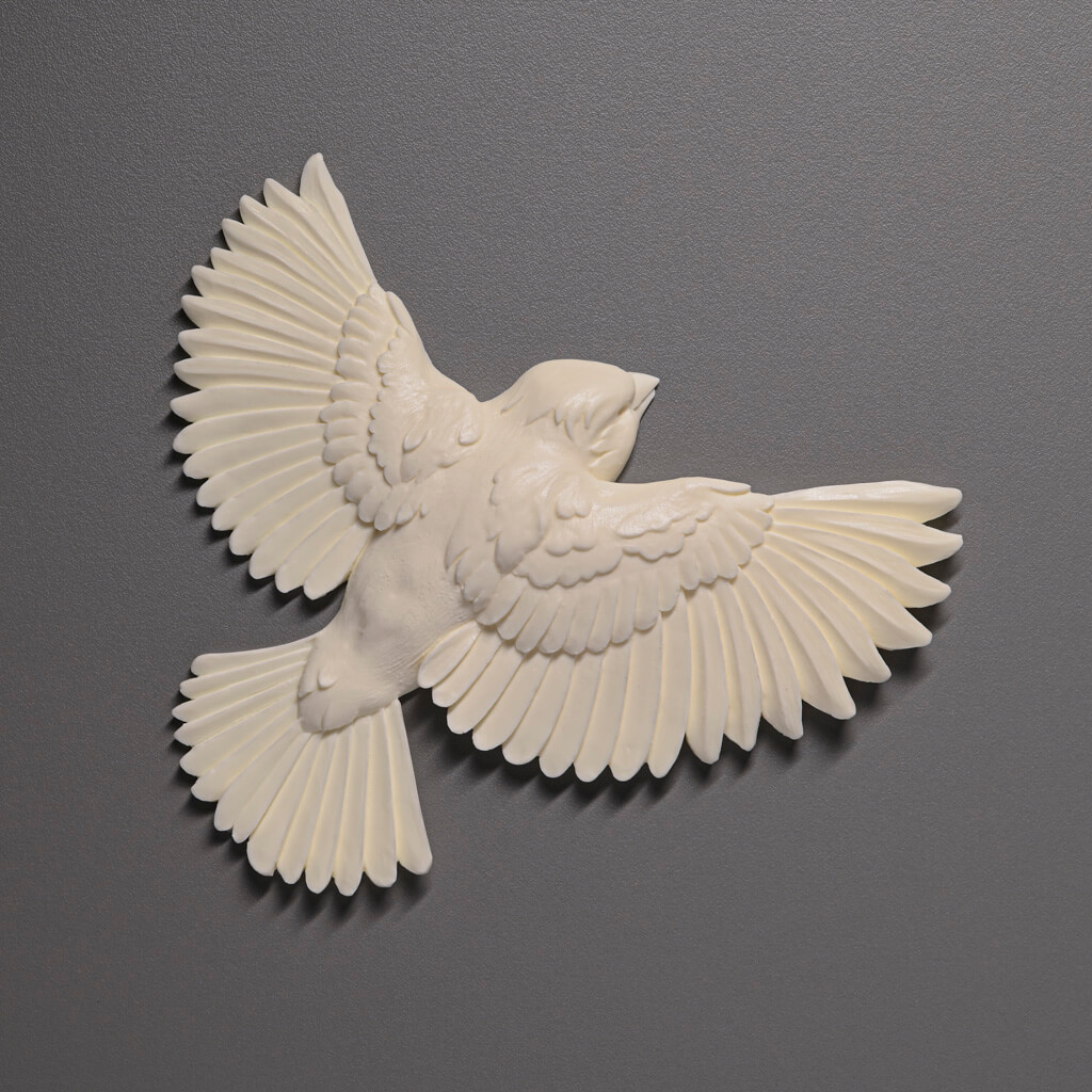 Лепной декор NPU-492L представляет собой объемное изображение птицы в полете, выполненное в белом цвете из высококачественного полиуретана. Изделие отличается потрясающей детализацией: каждое перышко проработано с удивительной точностью, создавая эффект реалистичности и движения. Скульптурная композиция словно оживает на стене, привнося динамику и легкость в интерьерное решение.