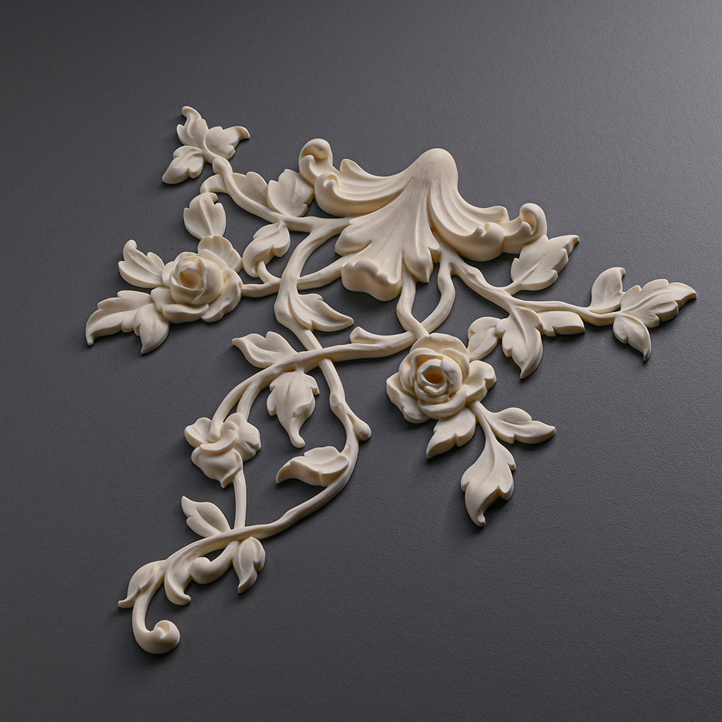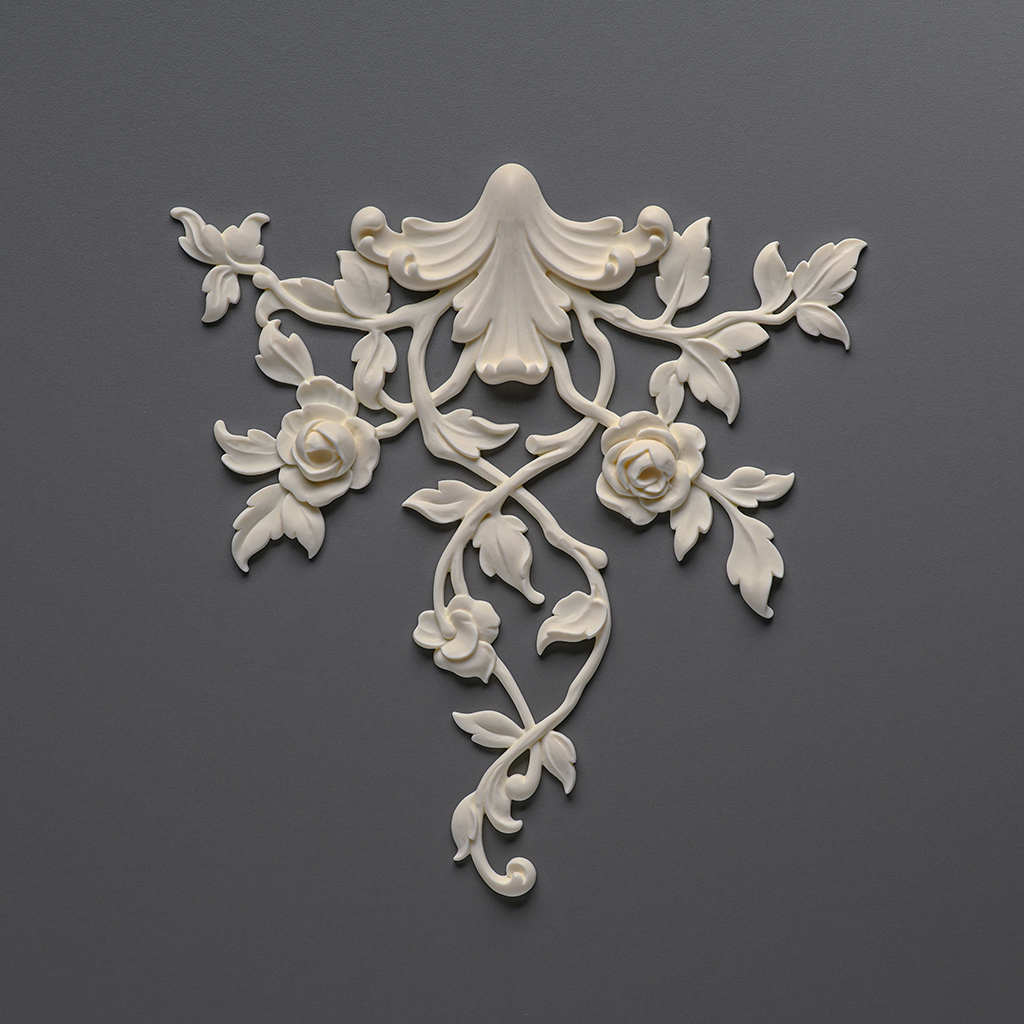 Лепнина в интерьере с такой накладкой приобретает особую выразительность: плавные линии, утончённые розы и листья создают атмосферу уюта и роскоши.