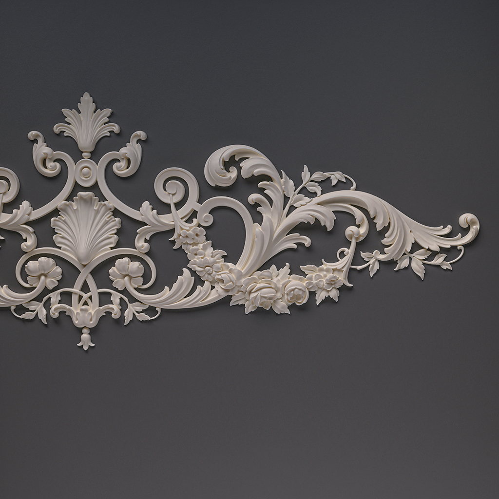 Лепной декор NPU.VRS-006 — это изящная накладка с богатым растительно-цветочным орнаментом, выполненная из высококачественного полиуретана. Она отличается сложным, детализированным дизайном, который напоминает дворцовые мотивы эпохи барокко и рококо. Завитки, плавные линии, листья и цветы переплетаются в единую композицию, создавая неповторимый рисунок. Такое изделие не просто украшает поверхность — оно рассказывает целую историю о роскоши, величии и изысканности. Ширина (A): 1067 мм Высота (B): 352 мм Толщина (C): 23 мм Подобные габариты делают элемент лепного декора весьма внушительным: он отлично смотрится как в просторных помещениях, так и в более компактных зонах, где необходимо создать акцент. При этом небольшая толщина не «съедает» пространство, а благодаря лёгкому весу полиуретана монтаж не вызывает сложностей.Преимущества полиуретановой лепнины