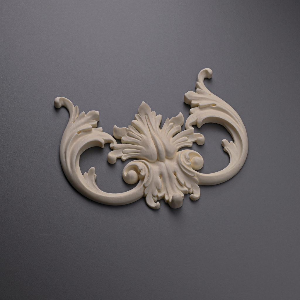 Резная накладка NPU-245 — профессиональная полиуретановая лепнина размерами 110×88×10 мм и 160×127×14 мм с высокодетализированными 3D узорами. Технология производства обеспечивает исключительную четкость рельефа и глубину рисунка.