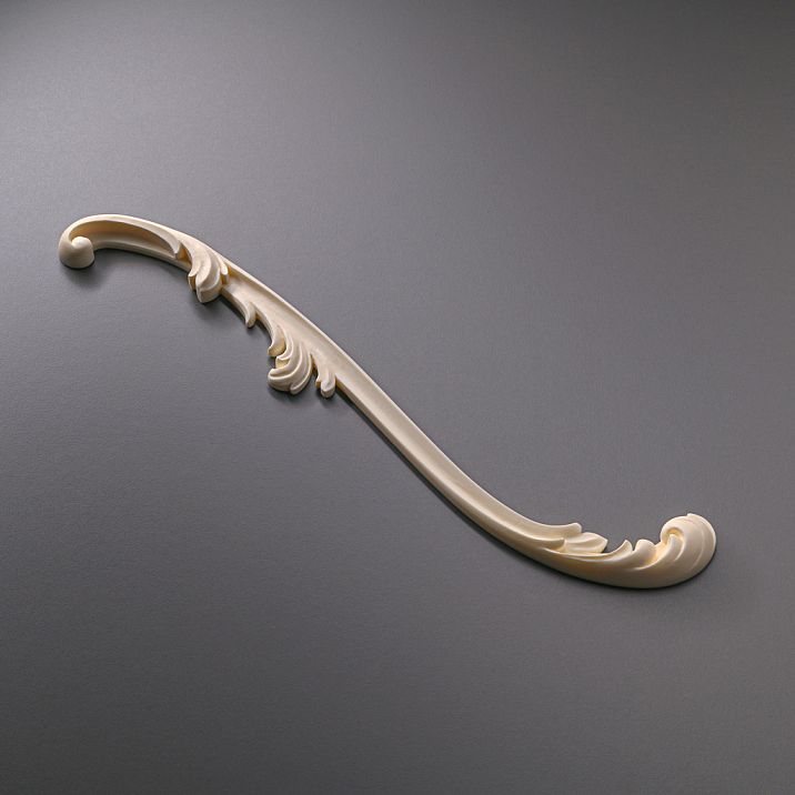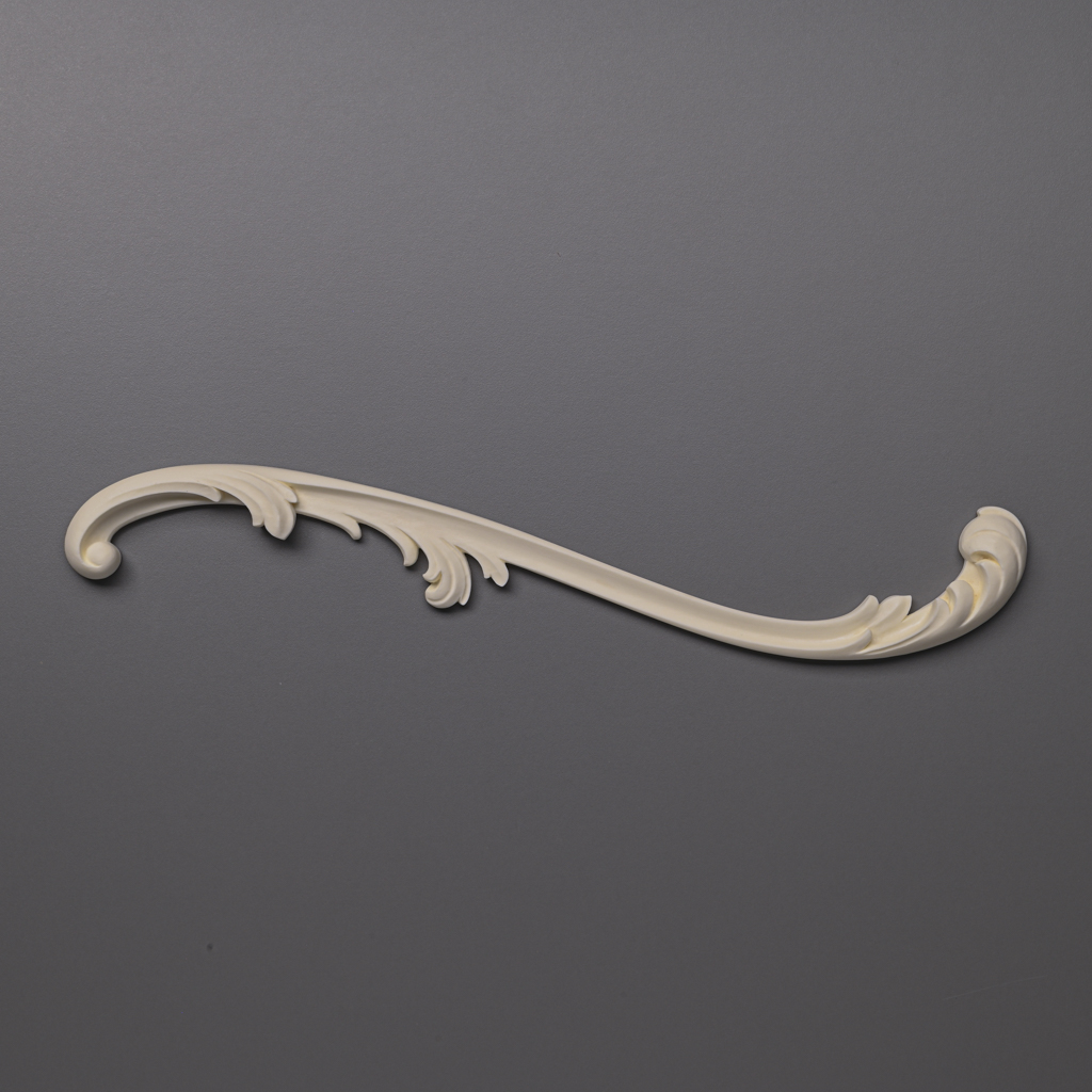 Резная накладка NPU-423R — это декоративный элемент из высококачественного полиуретана. Её размеры (примерно 336×58×13 мм) позволяют использовать её на большинстве дверей стандартного формата, при этом она не выглядит громоздкой и отлично вписывается в общий стиль. Плавные завитки и изящная резьба делают её прекрасным выбором как для классического интерьера, так и для более современных направлений дизайна.