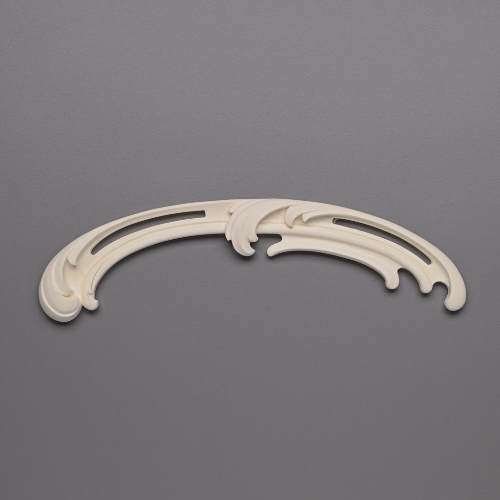 Модель NPU-426L имеет несколько “слоёв” или “полос”, которые придают декору объём и лёгкость. Это создаёт впечатление, будто завиток движется или развивается в пространстве. Такая конструкция подходит для размещения в верхней части стен, над дверными или оконными проёмами, а также для оформления каминных зон. Благодаря вытянутой форме декор может использоваться как горизонтально, так и под наклоном, что расширяет возможности его применения.