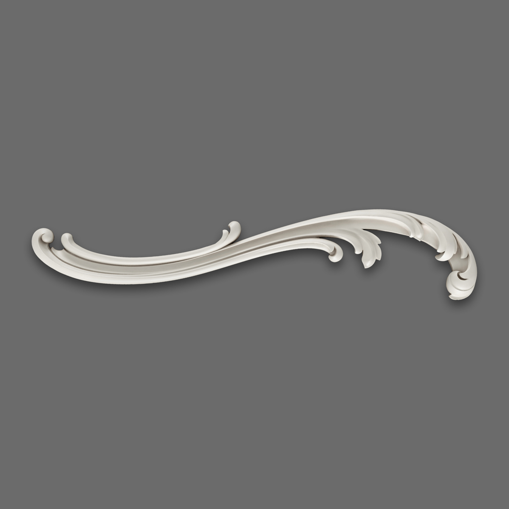 Первое, что бросается в глаза при взгляде на лепной декор NPU-427L, — это его вытянутая, динамичная форма. Кажется, будто плавный завиток застывает в полёте, образуя элегантную кривую, состоящую из нескольких волнообразных слоёв. Такой дизайн придаёт декору лёгкость и универсальность: он может служить выразительным акцентом или деликатно дополнять уже существующие детали интерьера.