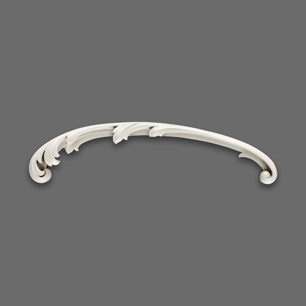 Лепной декор NPU-429L — это не просто красивая деталь, а универсальный инструмент для тех, кто ценит оригинальность и изысканность в интерьере. Его плавные дугообразные формы, напоминающие мягкие волны или стилизованные листья, подходят как для классических, так и для современных пространств. Лепнина из полиуретана даёт возможность смело экспериментировать с цветами, фактурами и размещением, при этом не требуя сложного монтажа и ухода.