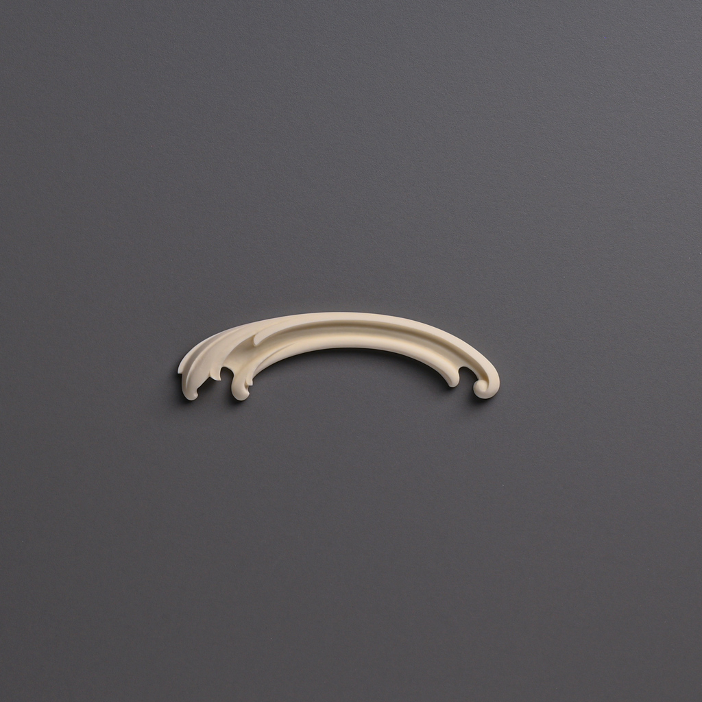 Модель лепной декор NPU-432L представляет собой дугообразный элемент с тремя плавными «волнами», которые постепенно сужаются к краям. Такое решение напоминает лёгкие завитки, будто застывшие в полёте. Благодаря многослойности и рельефу, декор смотрится очень динамично, придаёт помещению ощущение движения и лёгкости.