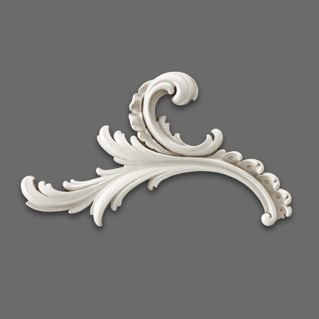 Резная накладка NPU-461L – стильный декор гостиной из высокопрочного полиуретана с барочным завитком левостороннего исполнения.