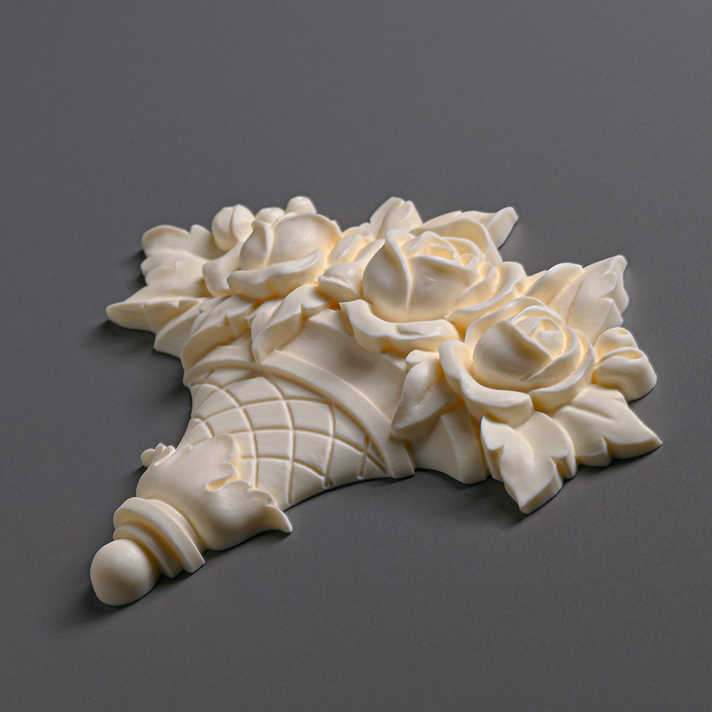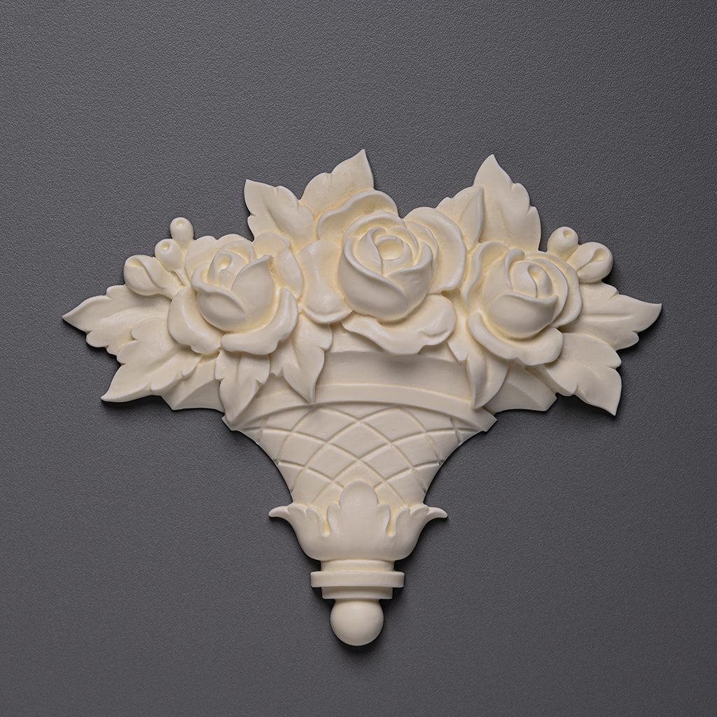 Лепной декор NPU-462.2 — это детализированная накладка из прочного и лёгкого полиуретана от производителя. Изделие выполнено в форме корзины с объёмным букетом роз, листьями и декоративными элементами, что создаёт выразительный рельеф и четкие контуры. Материал влагостойкий, устойчив к перепадам температур, подходит как для внутренних помещений, так и фасадов.