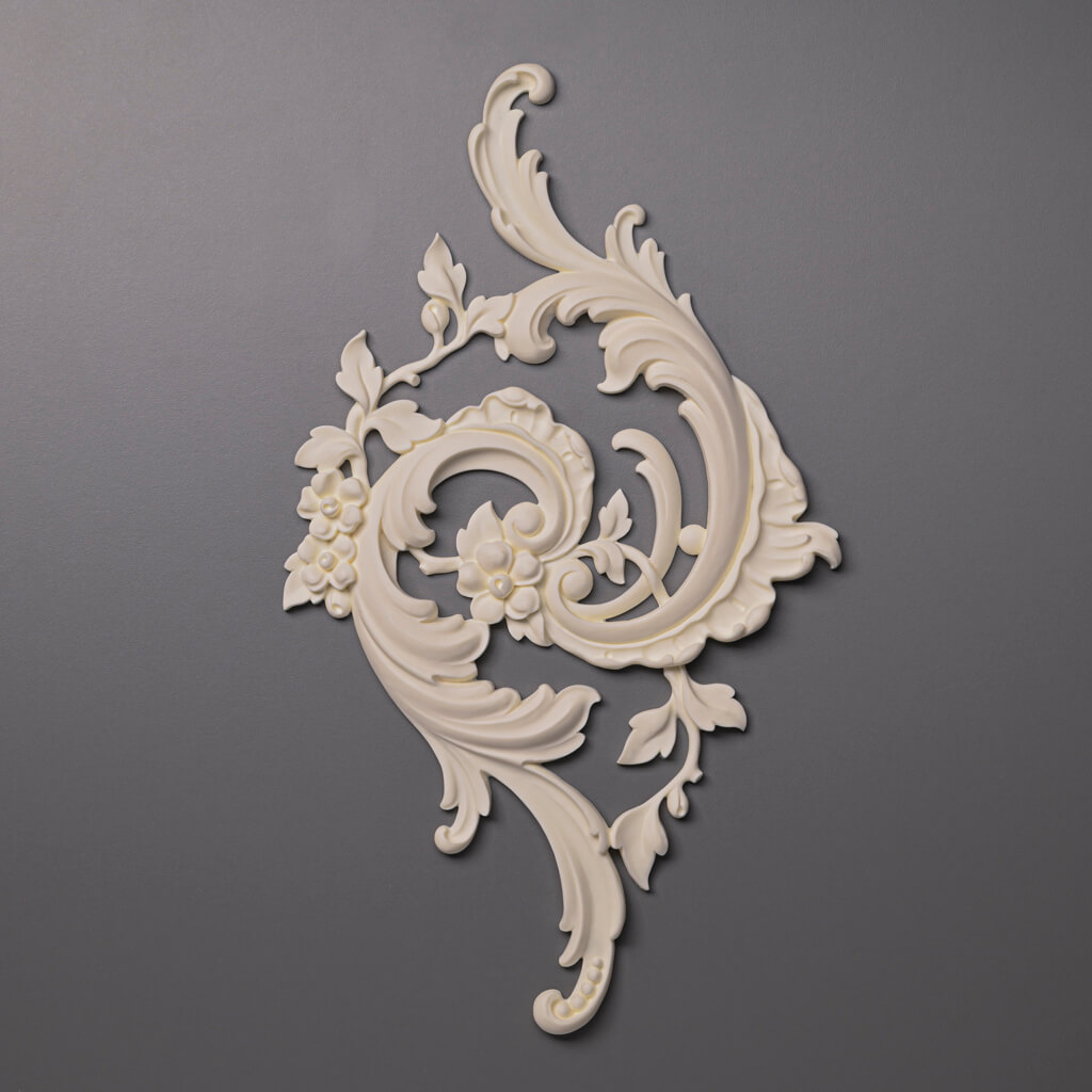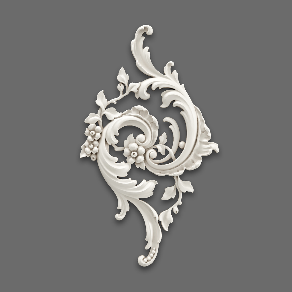 Фасадный лепной декор NPU-465 — высококачественная полиуретановая накладка с чёткими барочными завитками и цветочными мотивами. Изделие отличается лёгким весом, прочностью и устойчивостью к влаге и перепадам температур, что позволяет использовать его как внутри помещений, так и на фасадах зданий. Благодаря высокой детализации орнамента и точной форме элемент создаёт выразительный рельеф и придаёт интерьеру и экстерьеру эстетическую чёткость.