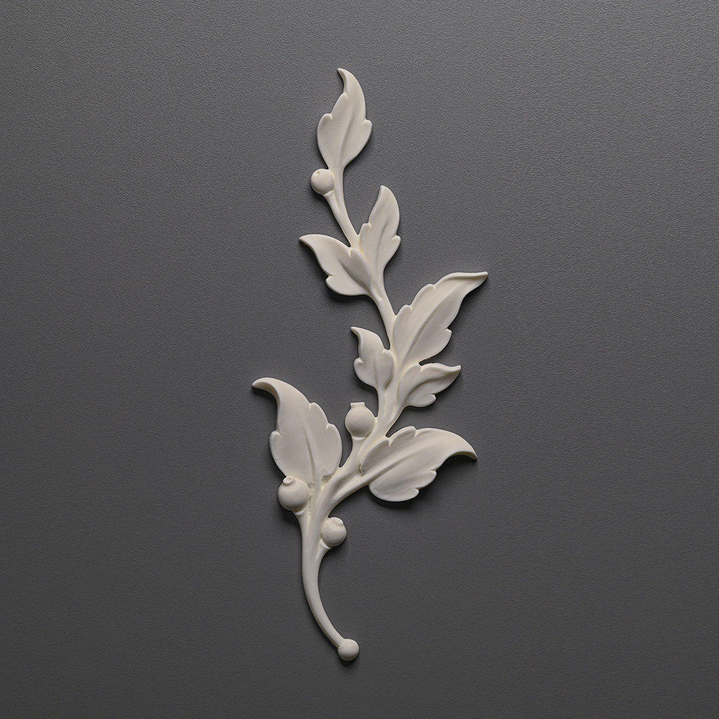 Итак, чем же отличается лепной декор NPU-472L от других моделей? Прежде всего, своей элегантной формой и возможностью комбинирования. Данный элемент выполнен в виде ветви с листьями и небольшими плодами, но при этом форма не перегружена деталями. Это позволяет декору вписываться в разные стили — от неоклассики до современного минимализма.