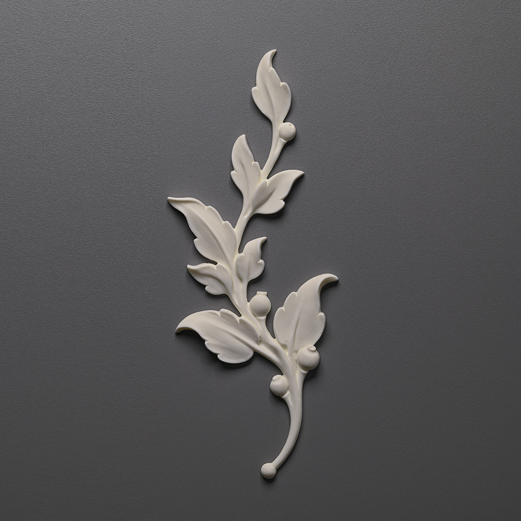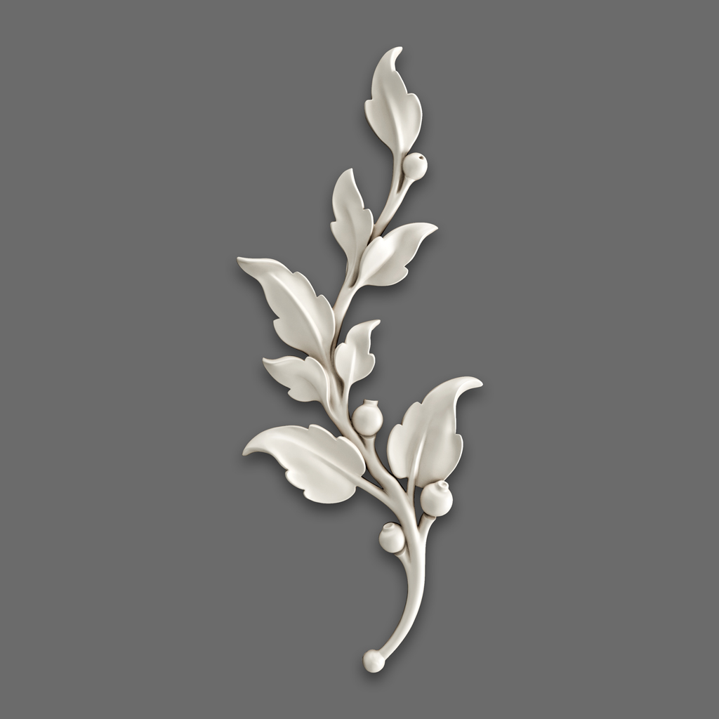 Лепной декор NPU-472R – это элегантный элемент, напоминающий ветвь с листьями и небольшими плодами. Такая форма идеально впишется в классический интерьер, но и в современном пространстве может стать эффектным акцентом.