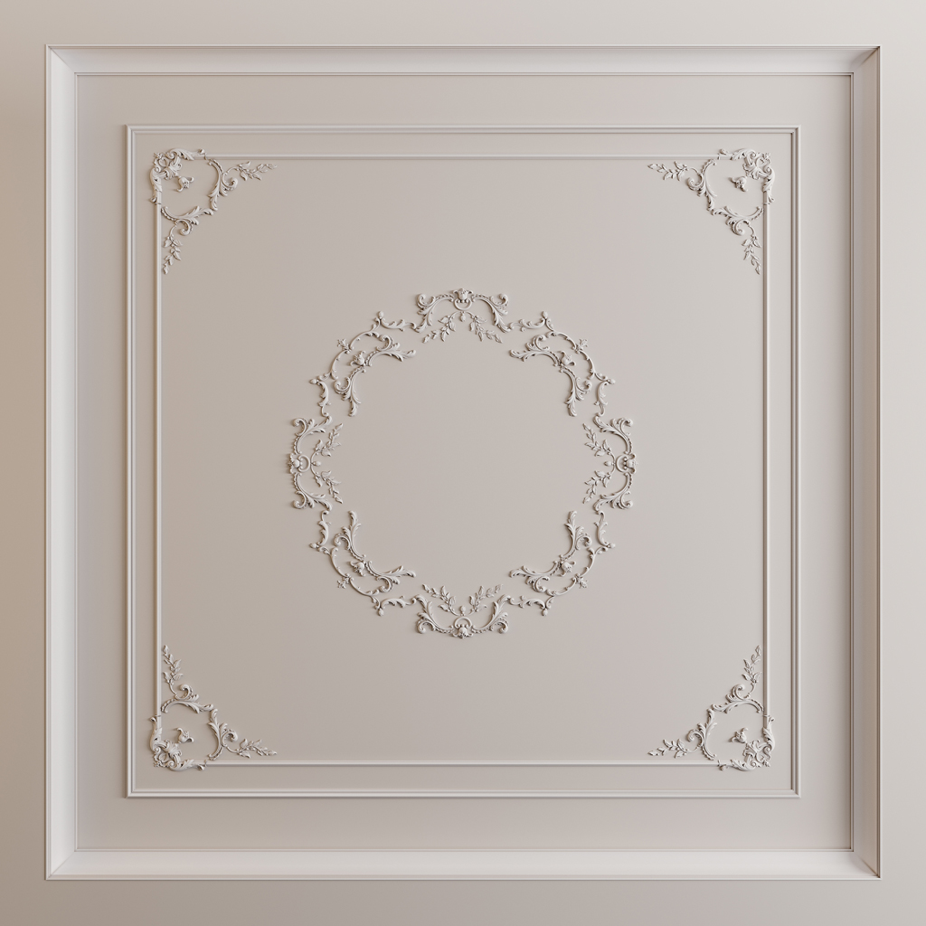 Лепной декор CPU-068 1325 × 1325 × 18 мм представляет собой выдающееся достижение современного декоративного искусства, объединяющее изящество классических орнаментальных традиций с преимуществами передовых производственных технологий. Модульная структура из 72 элементов 12 различных типов обеспечивает создание уникальных интерьерных решений исключительной художественной ценности.
