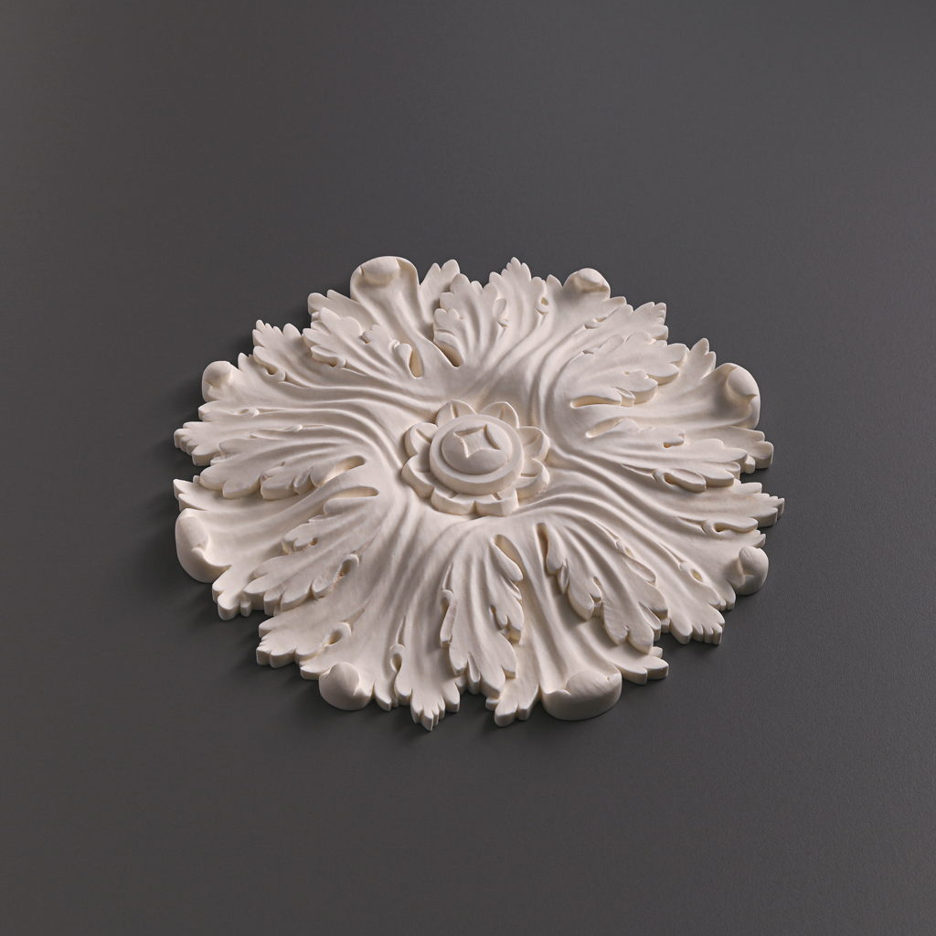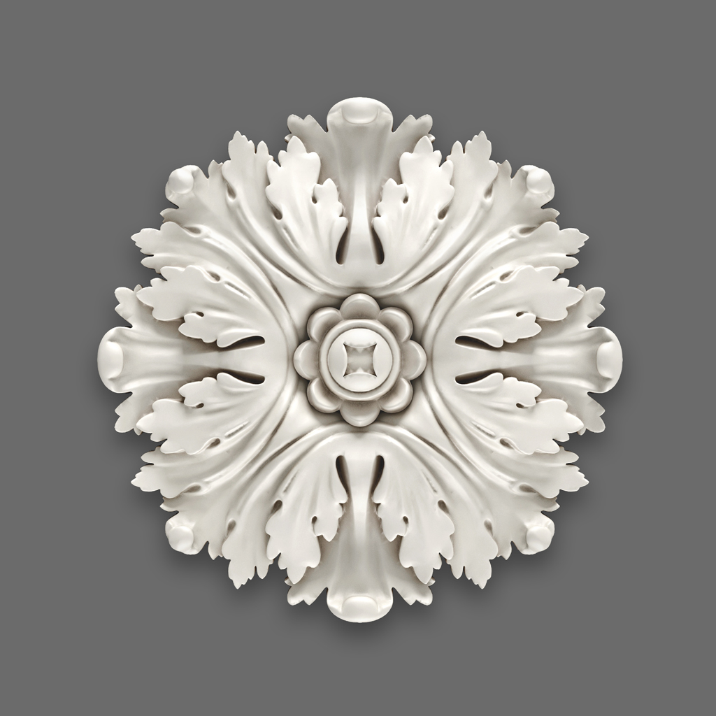 Выбирая лепное украшение для потолка, стоит обратить внимание на резную розетку RPU-044 по нескольким причинам. Прежде всего, гипоаллергенный полиуретан, из которого она выполнена – материал современный и безопасный. При этом его легкость значительно облегчает монтаж. Резные элементы создают иллюзию классического деревянного орнамента, при этом полиуретан не растрескивается со временем и устойчив к воздействию влаги и температурных перепадов.