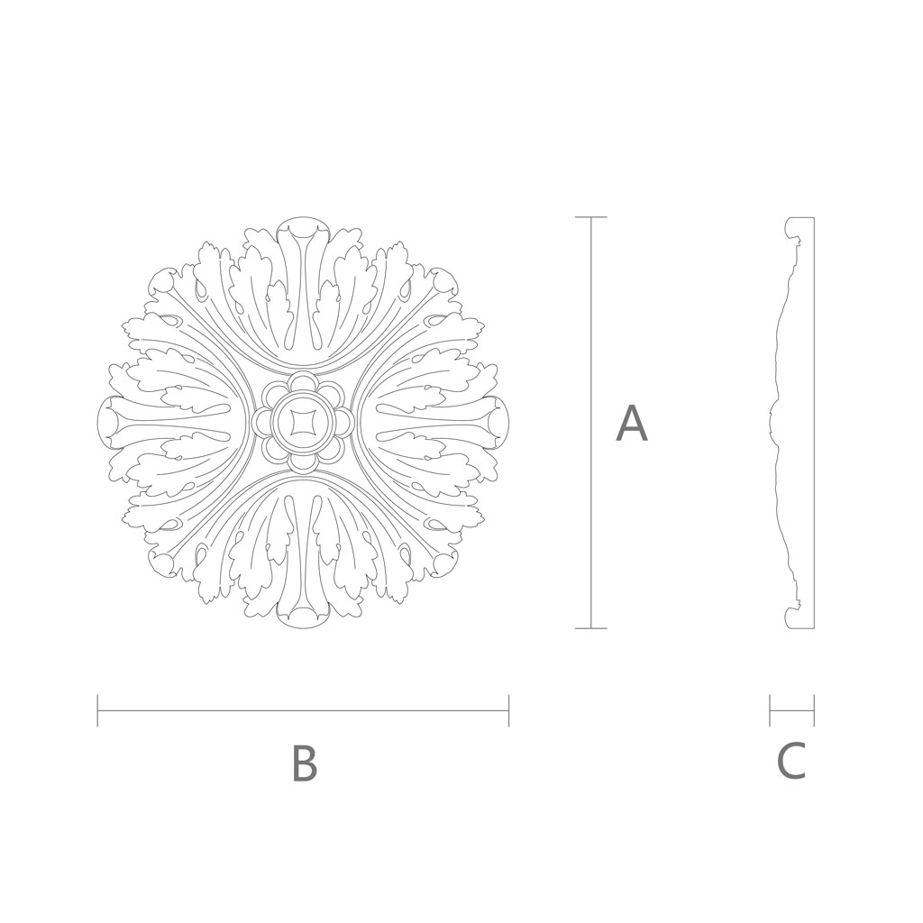 Дизайн резной розетки RPU-044 выдержан в лучших традициях классической эстетики, способный внести в любое пространство торжественность и роскошный вид. Это делает её незаменимым элементом для создания атмосферы величия и изысканности не только на потолке, но и в качестве декора мебели или дверей.