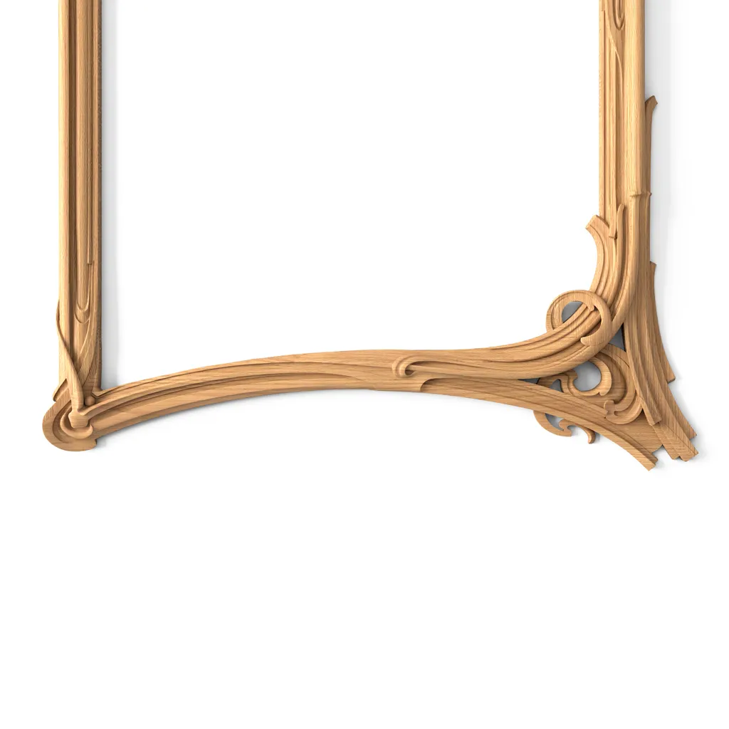 Дизайн и Стиль: Рама RM-018 отражает классические черты ар-нуво с её характерными кривыми линиями и природными мотивами. Резные элементы не просто декоративны, они призваны создавать игру света и тени, что добавляет динамику и глубину в каждый образ.