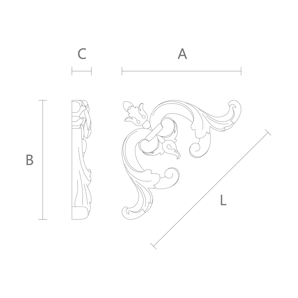 Резная накладка N-324 из дерева - это деревянный декоративный элемент с резьбой по дереву, который создается из массива дуба или бука. Это высококачественный и долговечный материал, который имеет приятный аромат и неповторимую текстуру. Резная накладка N-324 из дерева имеет треугольную форму и резной узор, который тщательно вырезается мастерами Stavros. Узор состоит из изящной композиции из листьев, цветов и завитков, которая воспроизводит старинные орнаменты. Резная накладка N-324 из дерева представлена в двух размерах: 70х70х11х95 мм и 120х120х20х162 мм. Вы можете выбрать тот, который лучше подойдет для вашего проекта.