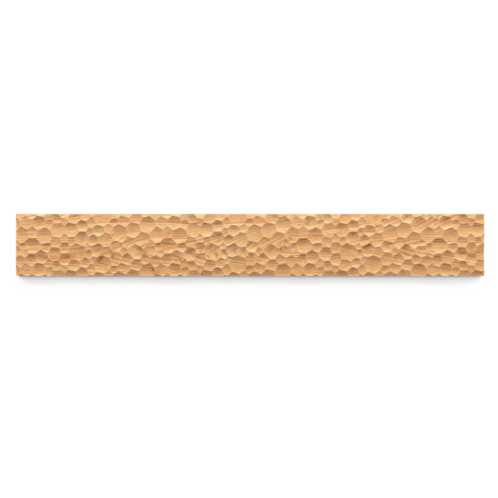 Дизайнерская акцентная рельефная фактура погонажа создана в дополнение к ручке Mercury НL-038. Современный фактурный погонаж из массива дерева K-127. Стильный контррельефный орнамент состоит из вогнутых выемок и образует игру светотени, которая будет оживлять пространство интерьера, создавая разнообразный визуальный эффект в зависимости от расположения источника освещения. Модель К-127 подойдет для декорирования мебели и стен. Гармонично сочетается с разнообразными поверхностями: с глянцевыми и матовыми фасадами, со стеклом и металлом.