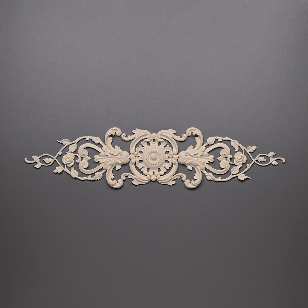 Данный декоративный элемент сочетает в себе плавные завитки, цветочные мотивы и симметричные линии, что придаёт ему особую выразительность. Создатели NPU.VRS-004 черпали вдохновение в классических стилях: барокко, рококо и ампир. Однако этот лепной декор не застрял в прошлом — он воплощён в современном материале, что делает его практичным, прочным и удобным в монтаже.