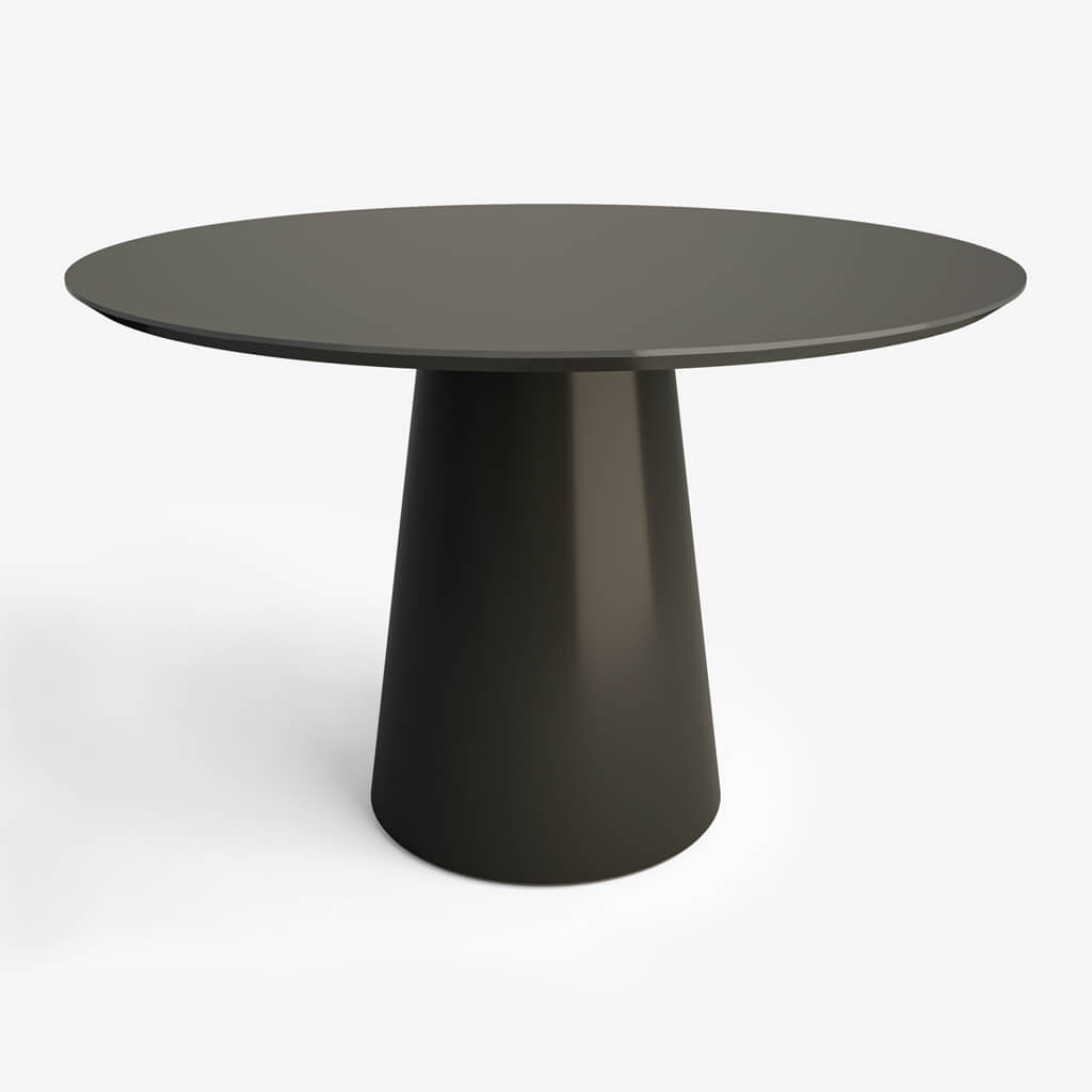 Круглая столешница на коническом центральном основании — это не просто дизайнерское решение. Это проверенная временем архитектура предмета, у которой нет слабых мест. Ни одной лишней ножки, ни одного острого угла, ни одного элемента, который можно убрать, не разрушив образ целого. Стол работает как скульптура: его одинаково интересно рассматривать со всех сторон, под любым углом, при любом освещении.